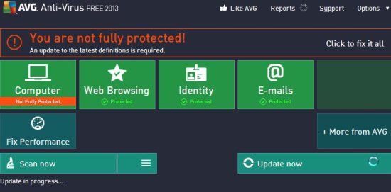 After your installation is complete you can view AVG free antivirus interface as shown in above screenshot. Just click on the Click To Fix It All. This fixes all the errors; it may even update your AVG.