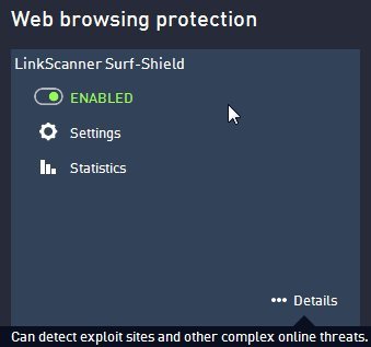 2. Web Browsing: In this free antivirus the link scanner is available. You can enable or disable the link scanner. You can also view and modify the settings of link scanner. You can also see the statistics of link scanner results.