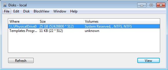 Once that the application is launched, you will see a list of all the hard drives that you have connected to your computer. To edit them, simply select the hard drive from the list and then click View in the bottom right corner. Hex editor will open up where you can directly start editing the partition. Same thing goes for files, you just have to select File >> Open.