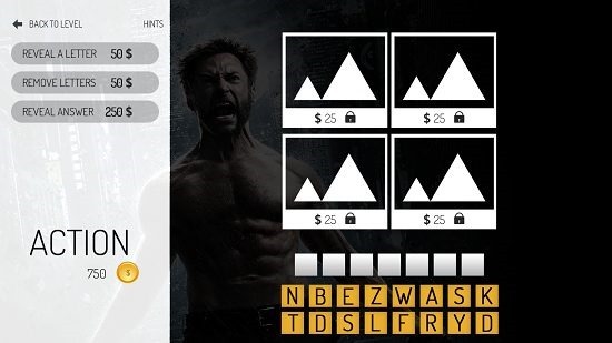 Each correct guess of the movie name awards you game dollars. If you don’t use any picture hint, you get 100$, if you use one, you get 75$ and so on. You can return to the main screen of the app at any given point of time by using the back arrow button at the top left of the screen. Once a stage is complete, you will automatically be taken to the next stage.