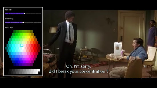 SubRT Player is a nice Windows 8 Video Player App, with good option for the subtitles like changing the font size and font color of the Subtitles. You can also change the time delay of the Subtitles to synchronize it even better with the movie. Do give it a try for sure.