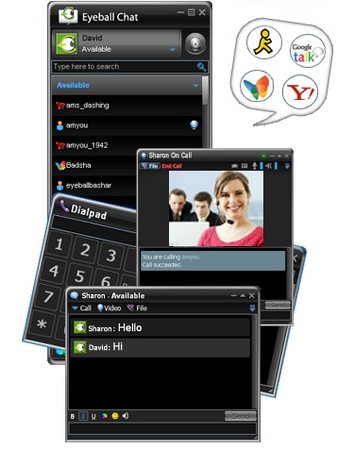 Eyeball Chat is a free video chat client to chat with your friends on AIM, Google Talk, Yahoo and MSN. Download Eyeball Chat free.