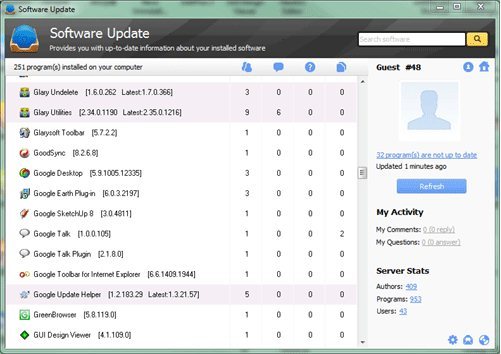 Glarysoft Software Update is a freeware that helps you to get information of software updates for software installed in your PC. Download Glarysoft Software Update free.