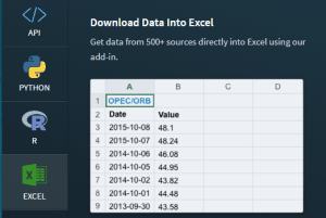 Quandl is a free Excel add-in to get tons of financial and economic data from database of Quandl directly from Excel. You can search and download the data.