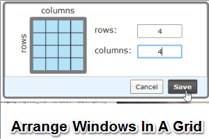 WindowGrid is a free software to automatically resize and arrange windows in a grid. You can also create a custom grid with number of rows and columns of your choice.