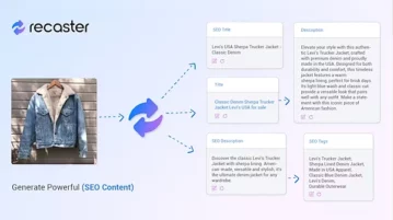 Recaster AI allows users to generate SEO content from product images providing optimized SEO titles, descriptions, tags, etc.