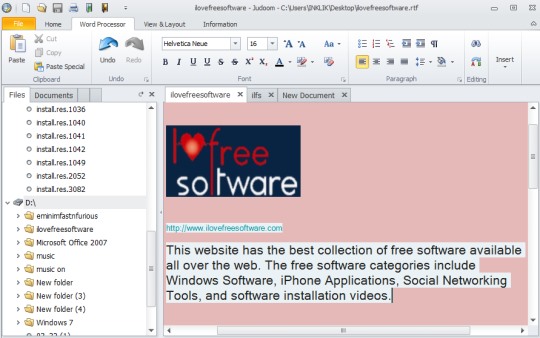 Judoom is a free word processor that is used to create, edit rich text documents, MS Word files, Open Office files, and plain text files.