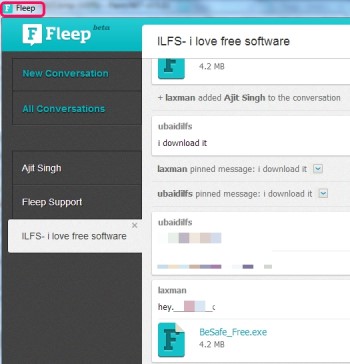Fleep (beta) is a free communication tool to send messages as well as share files with friends. It can send large files and executable files also.