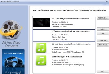 All Free Video Converter can convert audio to video, audio video files to any supported output format, and can extract audio from video files in bulk.