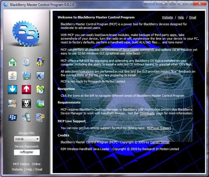 Blackberry Master Control Program is a free Windows application to control Blackberry phones, it consolidates all functions of the device, into one application.