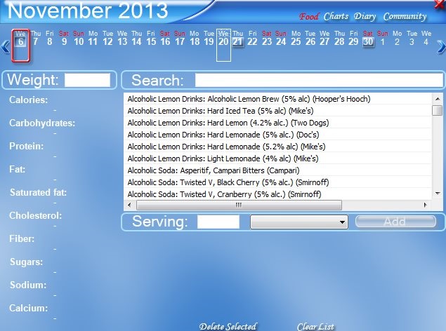 JXCirrus CalCount is a free cross platform calorie calculator which you can use in order to keep track of your daily calorie intake and create diet plans.