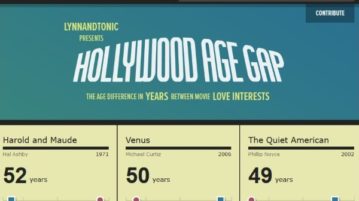 Hollywood Age Gap is a website where you can find out the age gap in years between the lead romantic pairs in Hollywood movies.