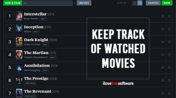 This article covers 4 free websites to keep track of watched movies. With these websites, you can create and manage lists of watched and watchlist movies.