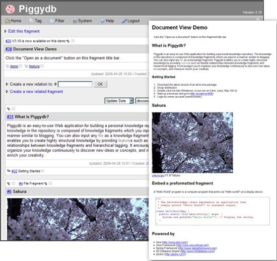 Piggydb is a free web notebook application which will help you organize knowledge. Download Piggydb Free.