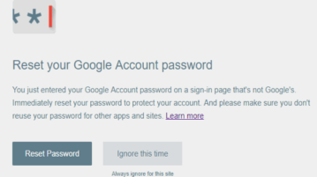 Password Alert is a free Chrome extension to get alert when you enter Google password on a non Google page. You can then reset password or ignore the alert.