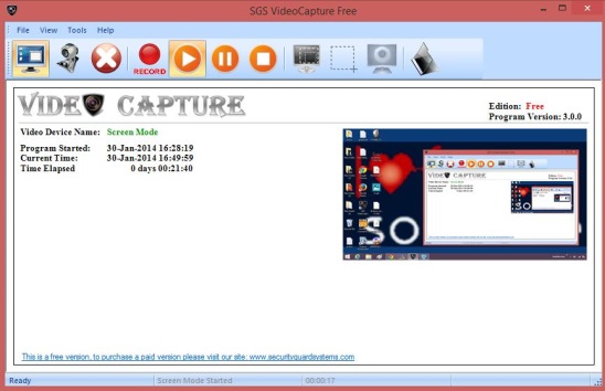 →SGS VideoCapture Free, is a free screen recording software to record and save screen as well as webcam activities, and then helps to play and save recordings.