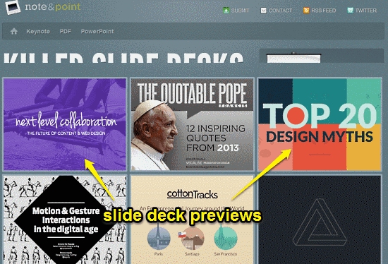 Note & Point is a free website to view and download PDF slide decks. You can download PDF slide decks on a variety of subjects, and upload your slides too.
