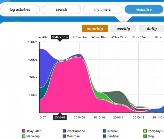 1DayLater is a free web application to keep track of time spent on various projects, keep track of expenses, and keep track of business miles.