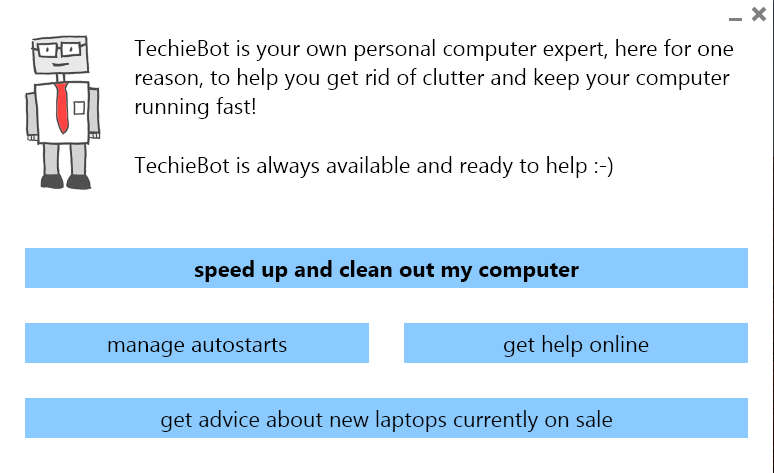 TechieBot is a free system cleaner to scan your computer for system clutter, unnecessary startup programs and more. Download it free.