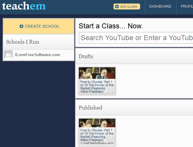 Teachem is a free online service which allows you to create online classes, schools and courses using YouTube videos. Free service.